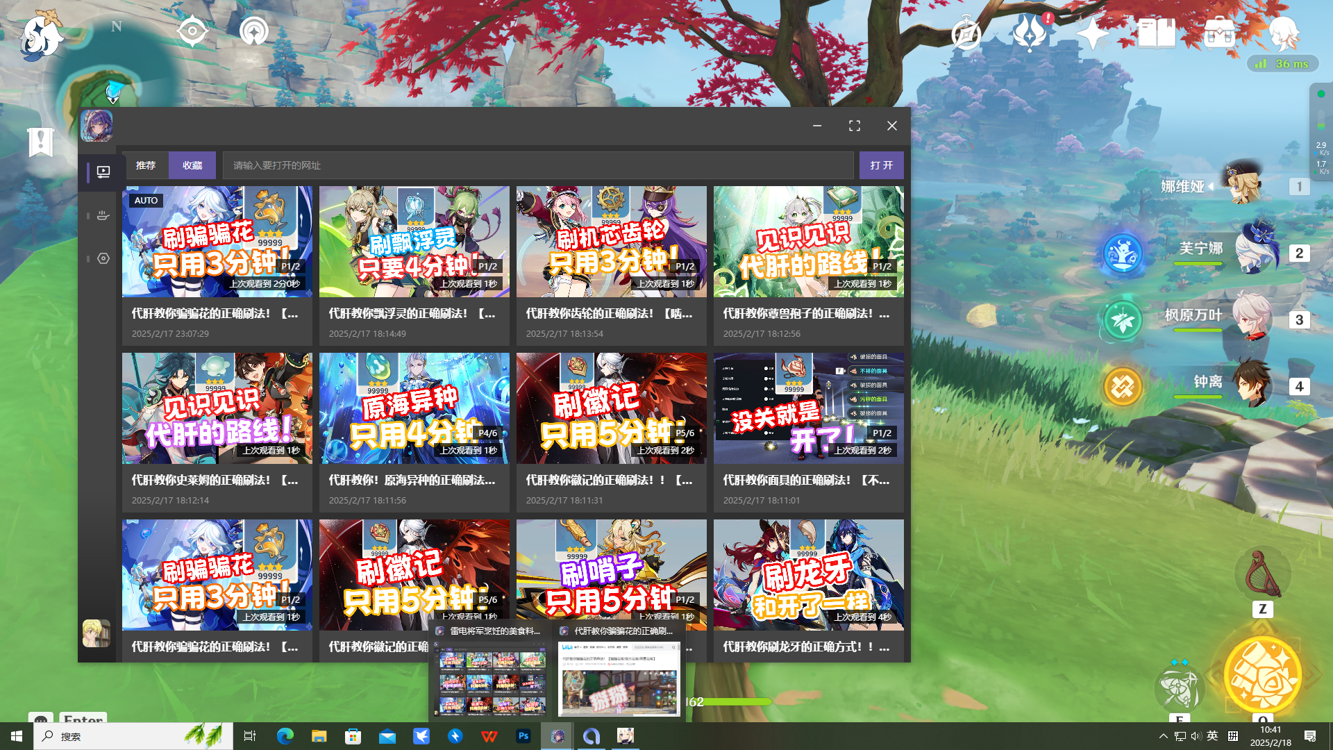 • 在底部任务栏「雷电将军」的图标堆叠里点击视频窗口。